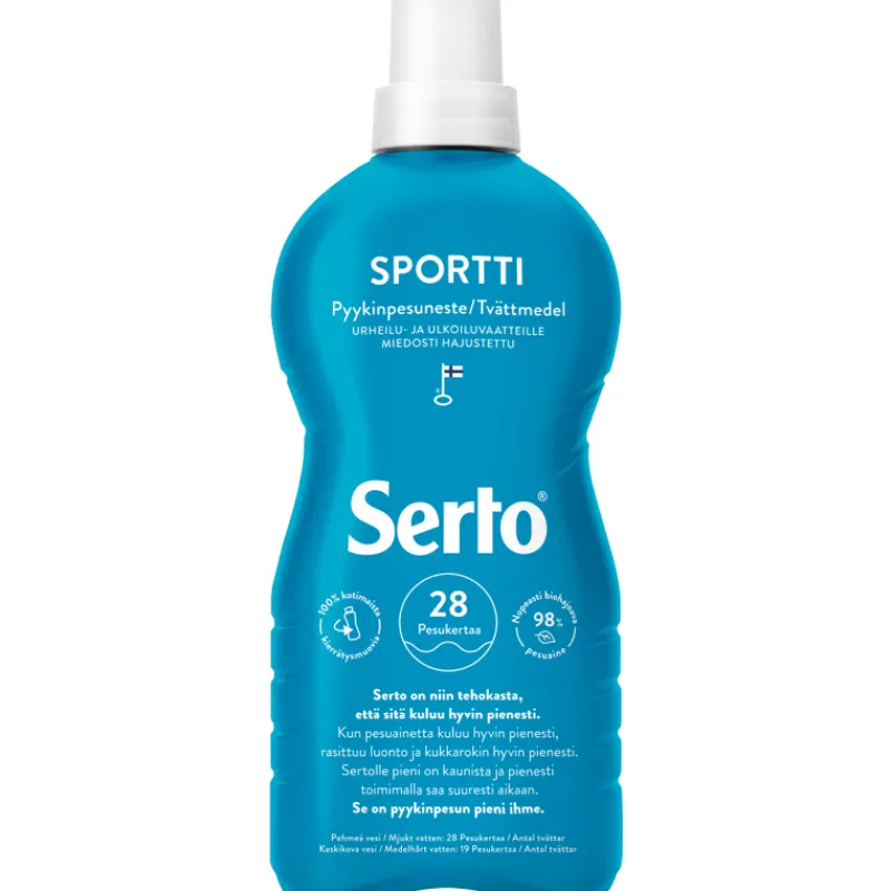Serton Sportti-pyykinpesuneste pesee hellävaraisesti hienoja teknisiä kuituja ja kalvoja sisältävät treenivaatteet, tuulta pitävät ja vettä hylkivät ulkoiluvaatteet (esim. GoreTex-kankaat) ja lasten ulkoiluhaalarit. Pyykinpesunesteen mieto ja raikas tuoksu neutraloi tehokkaasti hienhajua, ja sen erityinen värisuoja pitää tekstiilien värit kirkkaina. Tuote soveltuu käsinpesusta 60 °C pesuohjelmiin.