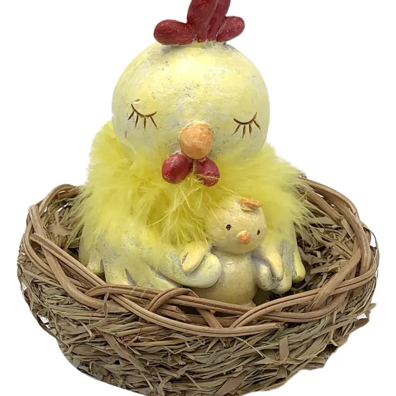 Tuo kotiin pääsiäistunnelmaa suloisella koristeella! Pääsiäiskoriste esittää pesää, jossa on tipuäiti lapsineen. Koristeen koko on 12 x 12 x 14,5 cm.