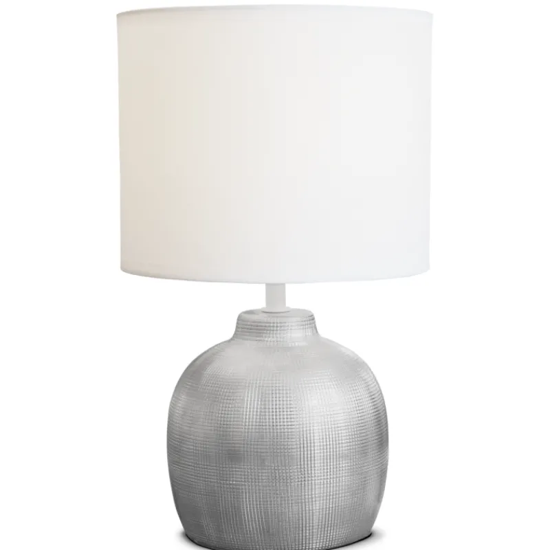 Sessak Evelyn pöytävalaisin on elagantti pöytävalaisin, joka luo tunnelmaa huoneseen kuin huoneeseen. Valaisimen jalka on valmistettu keramiikasta ja siinä on hopeanvärinen pinta. Kangasvarjostin on klassisen sylinterinmuotoinen. Sopii hienosti sisustuselementiksi ja lisävaloksi esim. sivupöydälle tai makuuhuoneeseen.