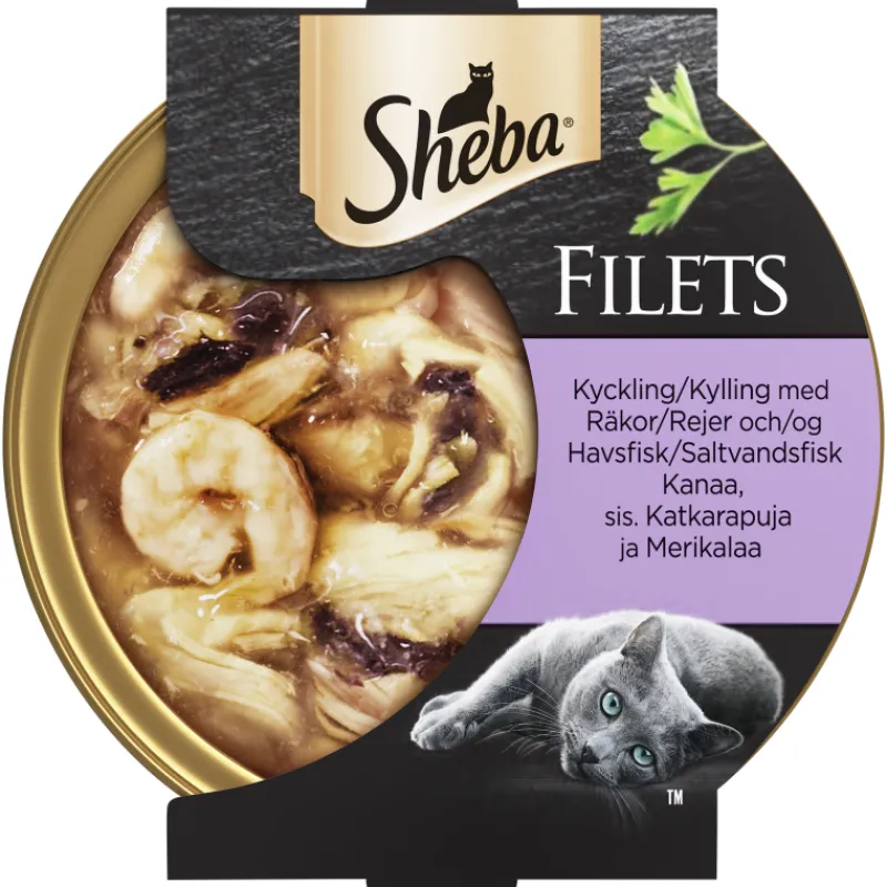 Kanaa ja katkarapuja sisältävä Sheba Filet -märkäruoka on valmistettu vain mehukkaimmista kanapaloista ja herkullisista katkaravuista. Kerta-annos on kastettu kevyesti ylelliseen kastikkeeseen. Maistuva ateria antaa iloa kissasi aisteille.