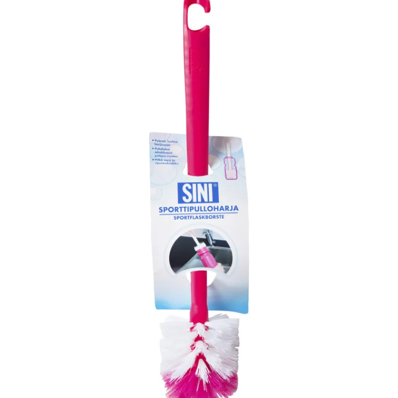 SINI Sporttipulloharja on suunniteltu urheilujuomapullojen, maljakoitten sekä termospullojen pesemiseen. Pyöreä, pehmeä nailonharjas ulottuu hyvin pullon joka nurkkaan ja puhdistaa tehokkaasti, mutta hellävaraisesti. Pitkän varren avulla harja ulottuu myös kapeiden ja pitkien maljakoiden pohjaan asti. Sopii erinomaisesti myös tehosekoittimen puhdistukseen. Kätevä ripustuskoukku. Sporttipulloharjan pituus on 39 cm. Värit pinkki tai turkoosi.