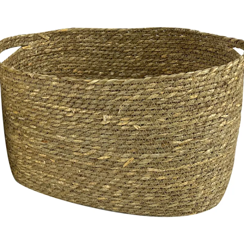 Meriruohosta valmistettu Milos-kori tuo luonnonläheistä ilmettä kodin pientavaroiden säilyttämiseen. Kahvat helpottavat korin siirtelyä.