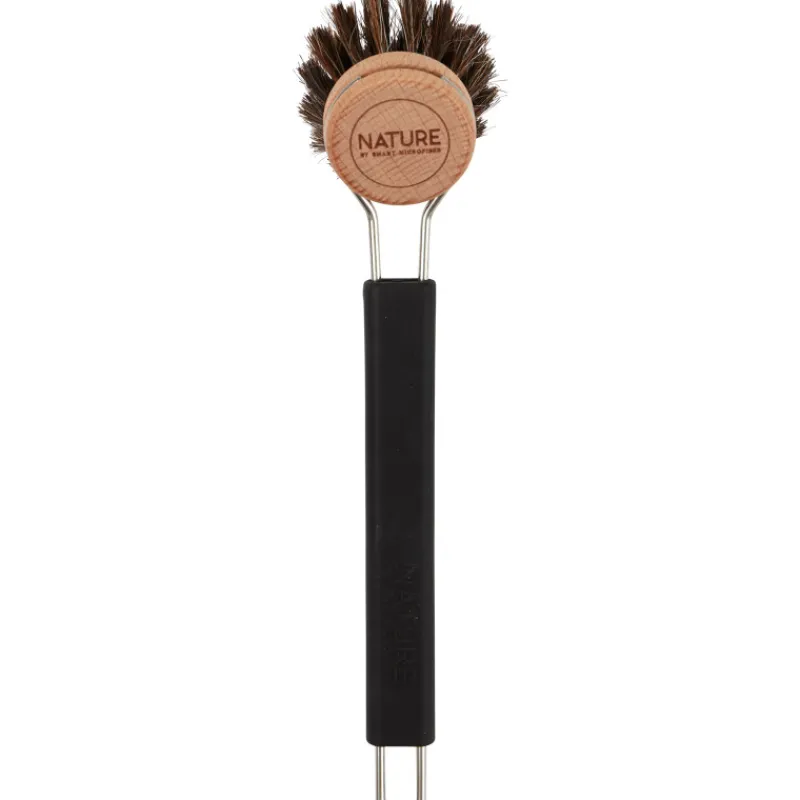 Astiaharja silikonikahvalla, jonka harjaspää on FSC-merkittyä pyökkiä. Tiskiharja on hellävarainen hopean, lasin ja kristallin pesussa, mutta samalla tehokas kattiloden ja pannujen tiskaamisessa. Harjaspään saa helposti vaihdettua, kun se on kulunut. Väri musta.
