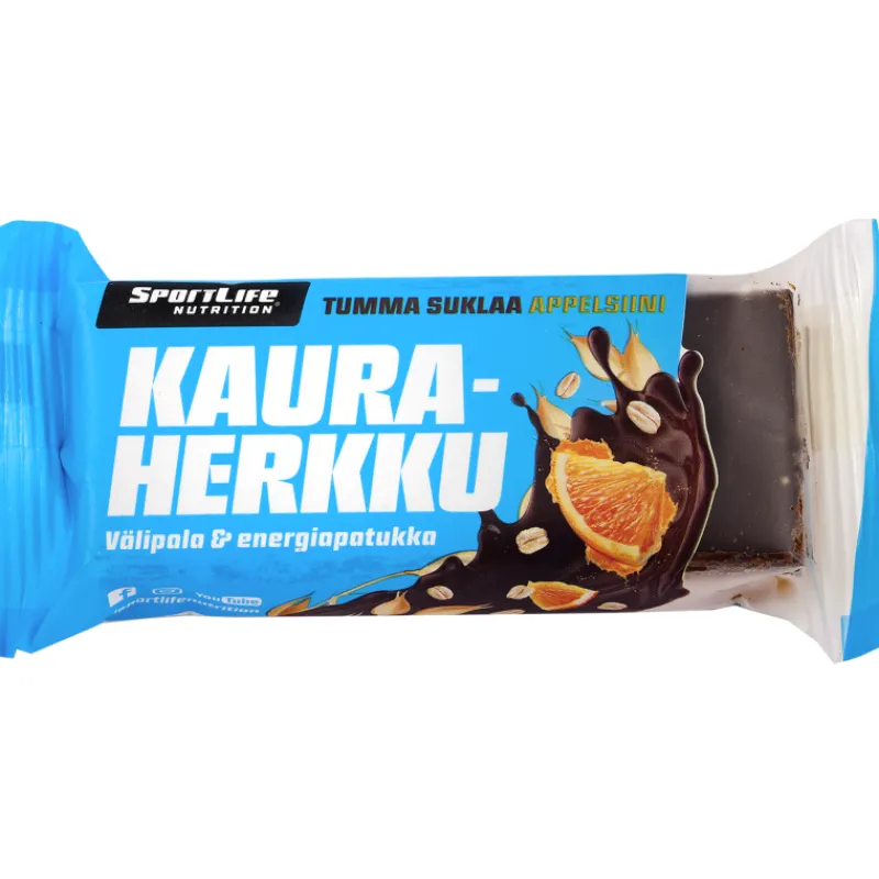 SportLife Nutrition Kauraherkku tummasuklaa-appelsiini -energiapatukka on valmistettu aidosta kaurasta ja luontaisista raaka-aineista. Välipalapatukka on erinomainen valinta kun kaipaa hiukan lisäenergiaa päivään.
