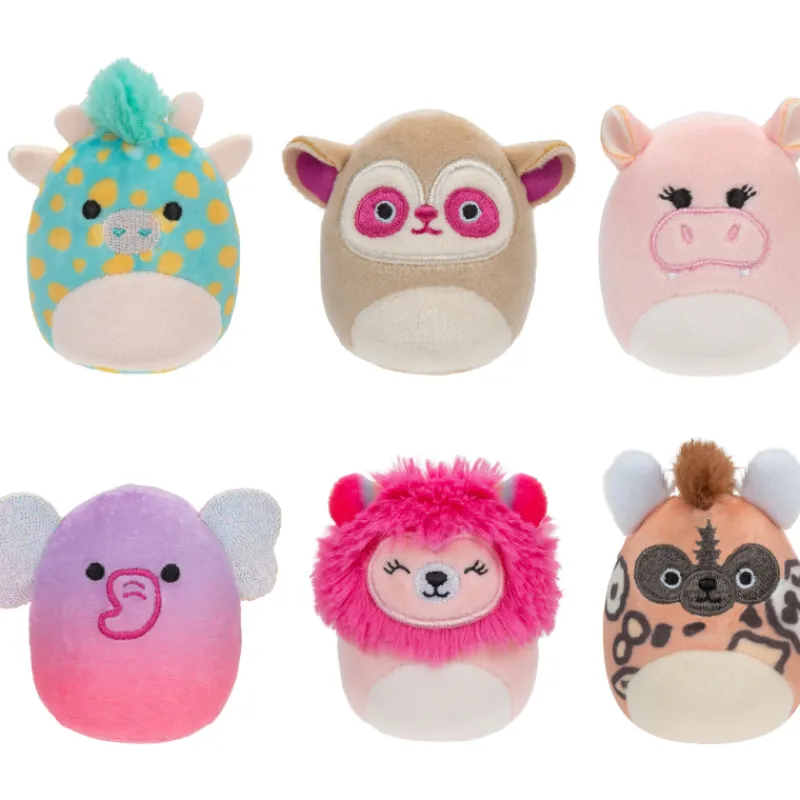 Pakkaus sisältää 6 kappaletta 5 cm kokoisia Squishmallows-hahmoja.
