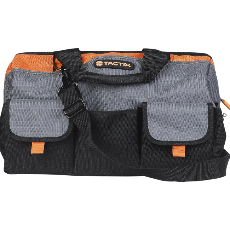 Tactix työkalulaukku – täydellinen valinta työkaluillesi ja muille pienemmille tavaroillesi! Tilava sisätila tarjoaa runsaasti tilaa erilaisille työkaluille/tarvikkeille, ja moniosastorakenteen avulla pidät työkalusi ja tavarasi järjestyksessä missä tahansa liikutkin. Laukun mitat (leveys 40,5 cm x syvyys 28 cm x korkeus 30,5 cm) ja tukeva olkahihna tekevät siitä loistavan valinnan niin ammattilaisille kuin harrastajillekin.
