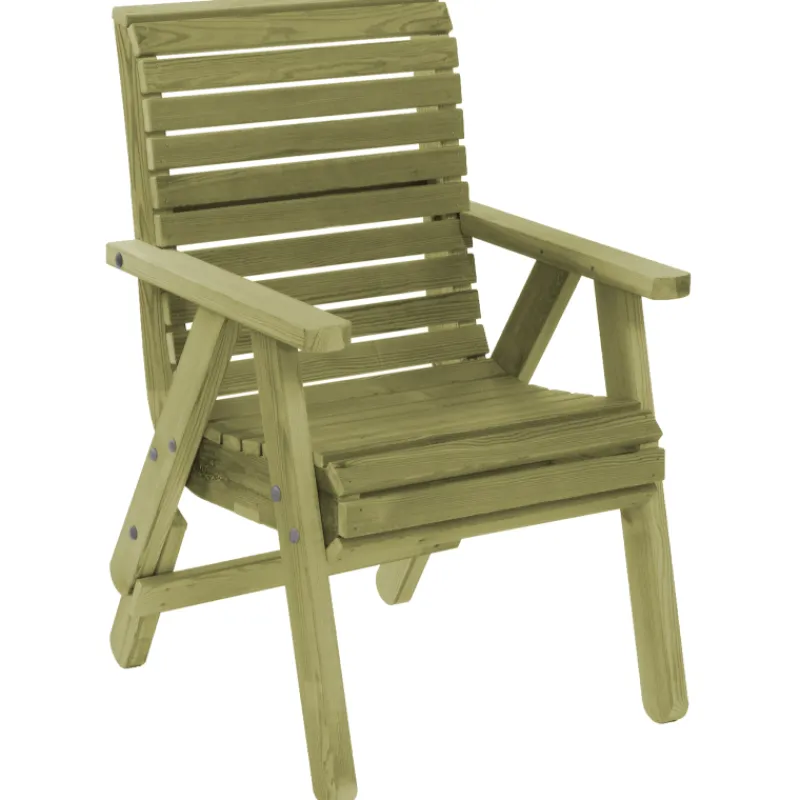 Elli-tuoli on painekyllästetystä kotimaisesta puusta valmistettu erittäin tukeva ja hyvin muotoiltu tuoli pihaan, terassille tai sisälle. Takana sijaitsevan jatkojalan ansiosta tuoliin voi käden käänteessä valita rennon lepoasennon tai ryhdikkään ruokailuasennon. Tuolia on saatavilla myös korkealla selkänojalla sekä ilman jatkojalkoja.