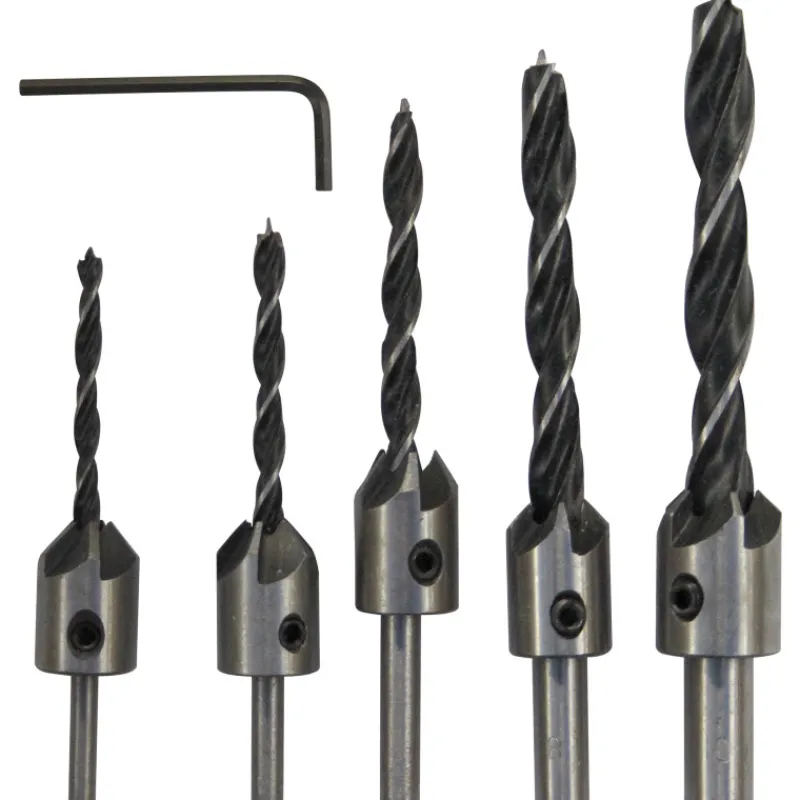 Senkkausterät puulle, viiden terän sarja. Terillä on säädettävä syvyys. Sisältää seuraavat koot: 4 mm, 5 mm, 6 mm, 8 mm ja 10 mm.