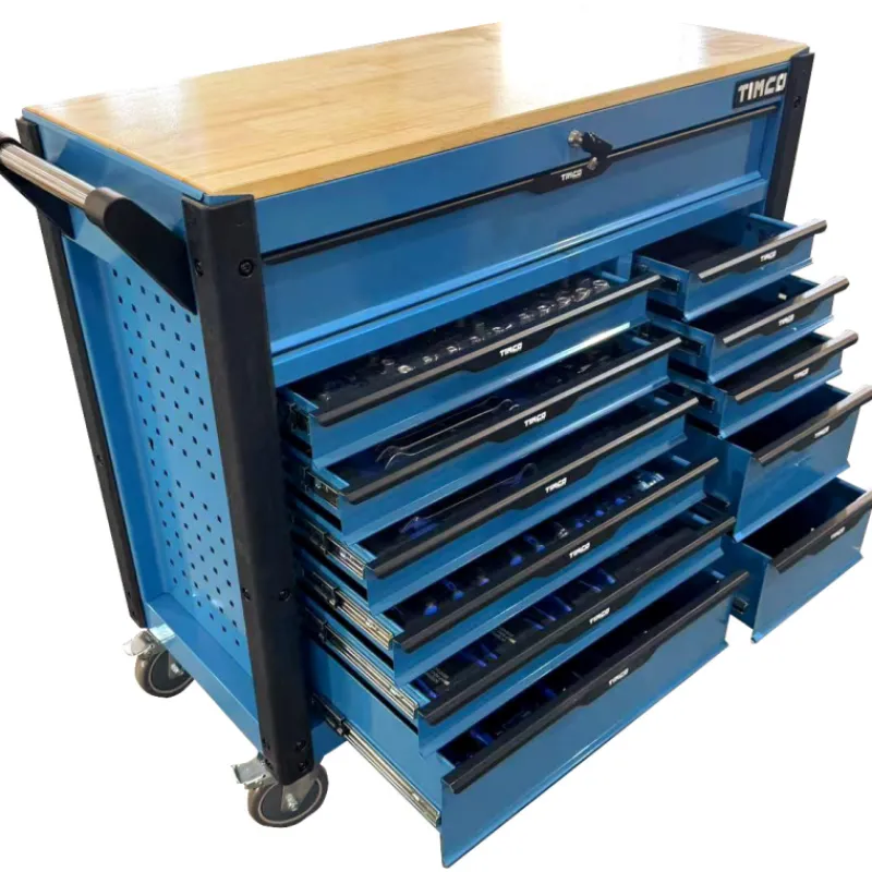 Timcon 275-osainen puutasolla varustettu työkaluvaunu on laadukas valinta harrastelijoille ja ammattilaisille. Työkaluvaunu sisältää 275-osaisen kattavan valikoiman kestäviä työkaluja, joille jokaiselle on oma paikkansa pehmusteissa.