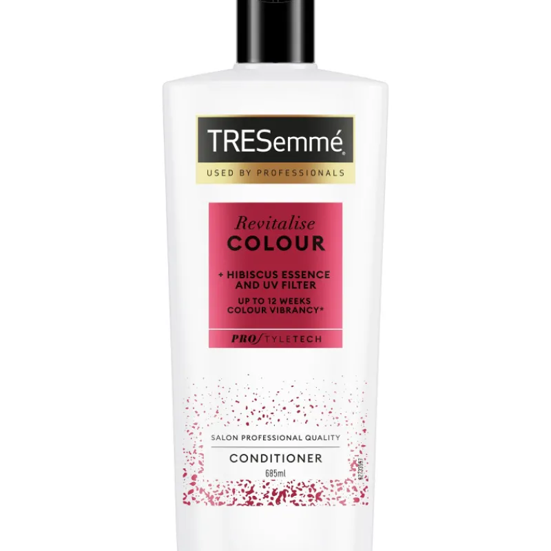 Värjätyille hiuksille suunniteltu TRESemmé Revitalize Color -hoitoaine auttaa pitämään hiusten värin kirkkaana ja suojaa väriä. Se sisältää vihreää teetä, rosmariinia ja auringonkukkaöljyä. Koostumus kosteuttaa hiuksia tehden niistä paremmin muotoiltavat ja pehmeämmät.