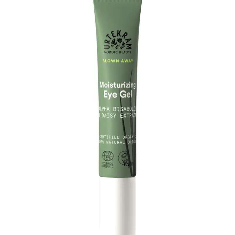 Urtekram Blown Away -kosteuttava silmänympärysgeeli on tehokkaasti kosteuttava kevyt geeli, jonka koostumus sisältää mm. hyaluronihappoa, joka auttaa ihoa säilyttämään joustavuuden ja torjuu juonteita. Koostumuksen hoitava alfa-bisabolol- ja päivänkakkarauute puolestaan auttavat ehkäisemään tummia silmänalusia sekä turvotusta. Sopii päivittäiseen käyttöön herkän silmänympärysihon hoitoon ja kosteutukseen.