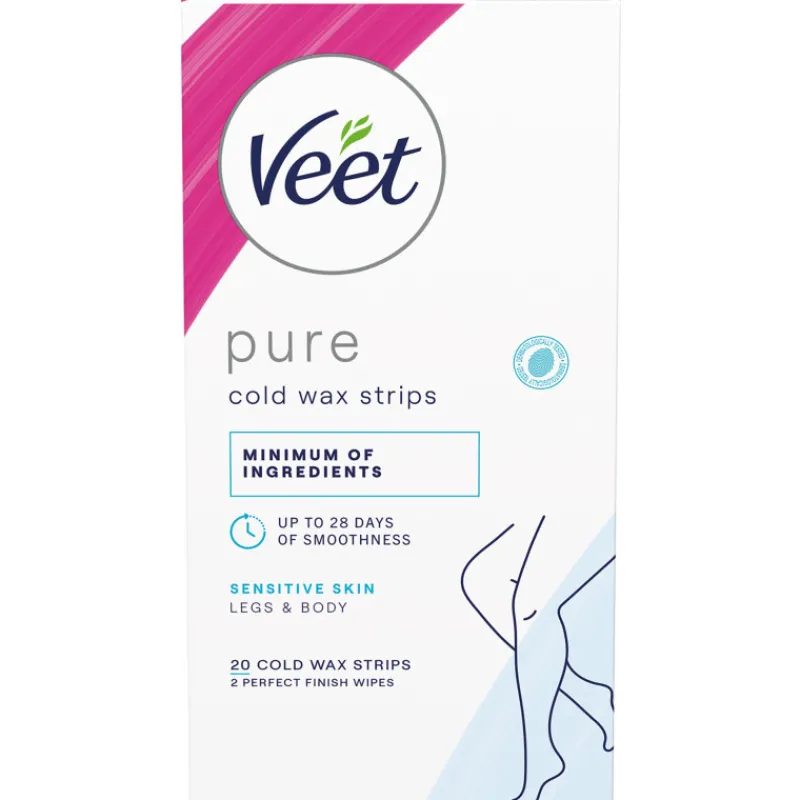 Veet Pure kylmävahaliuskat jaloille sopivat erityisesti herkälle iholle. Ne poistavat jalkojen ihokarvat juurineen ja pitävät ihon sileänä jopa 28 päivän ajan. Vahaliuskat sisältävät mahdollisimman vähän ainesosia.