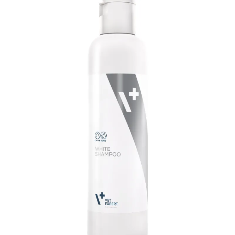 VetExpert White Shampoo on erikoisshampoo vaaleaturkkisten koirien ja kissojen pesuun. Lemmikkishampoon hellävarainen koostumus perustuu mietoihin ja ärsytystä lievittäviin pinta-aktiivisiin ainesosiin, joilla on pehmentäviä, kosteuttavia ja hoitavia vaikutuksia. Koostumus sisältää ihon uudistumista edistäviä allantoiinia ja pantenolia sekä turkin väriä hellästi kirkastavaa helmiäisuutetta. Shampoon sisältämät glyseroli ja lanoliini kosteuttavat ja ravitsevat ihoa.