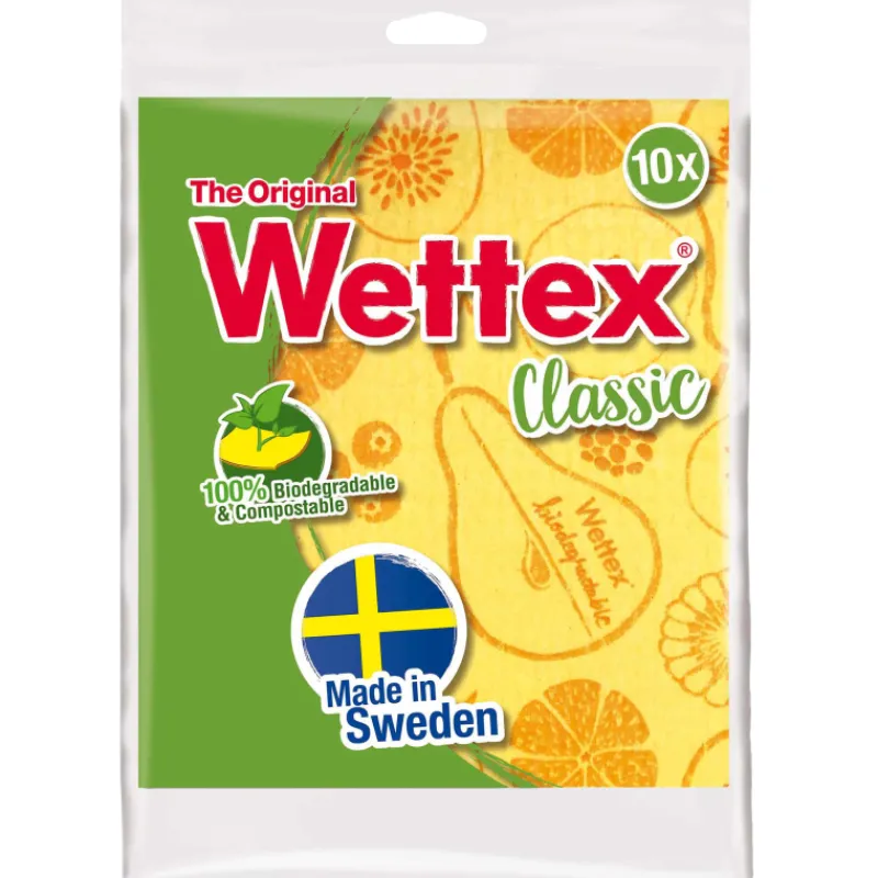 Superimukykyinen Wettex Classic on puuvillasta ja selluloosasta valmistettu 100 % biohajoava luonnontuote. Erittäin pitkät puuvillakuidut tekevät pyyhkeestä kestävän, mutta silti joustavan ja pehmeän. Optimaalisen kuitu- ja huokosrakenteen ansiosta ainutlaatuinen imukyky jopa 15 kertaa oman painonsa verran. Wettex soveltuu kaikkiin ympäristöihin, joissa tarvitaan ainutlaatuista imukykyäja kuivaamista. Pakkauksessa 10 kpl Wettex-sieniliinoja.