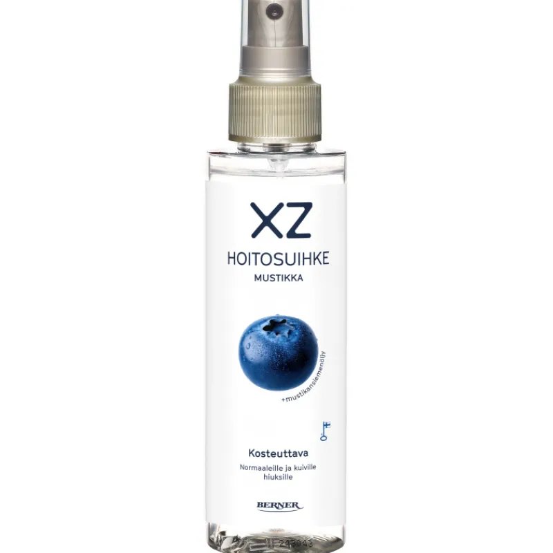 XZ Mustikka -hoitosuihke vähentää hiusten sähköisyyttä ja helpottaa kammattavuutta. Hoitosuihke tuo hiuksille luonnollista kiiltoa ja lisähoitoa. Tuote sisältää mustikansiemenöljyä ja kreatiinia. Tuotteessa on pehmeä ja raikas metsämustikan tuoksu. Hoitosuihke on hiuksiin jätettävä, ja sitä voi käyttää hoitoaineen sijaan tai hoitoaineen käytön jälkeen. Tuote sopii hyvin sekä kosteisiin että kuiviin hiuksiin.