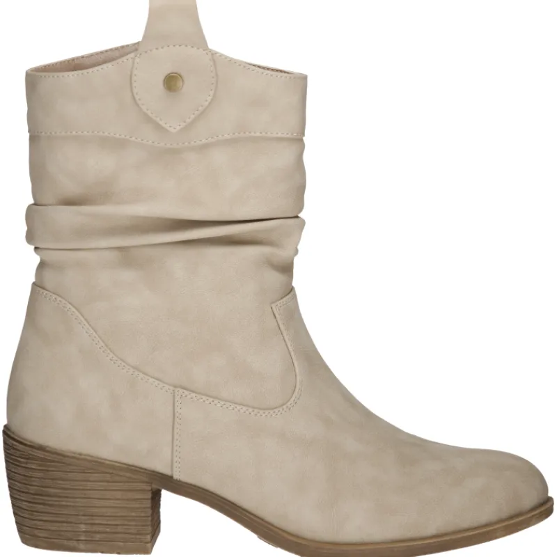 Naisten 2Moons Adya-nilkkurit korkealla varsiosalla ja sisäsivun vetoketjulla. Päällinen on napakkaa polyuretaania, sisäpuolella lämmin tekstiilivuori. Kivasti rypytetty kuosi, väri beige.