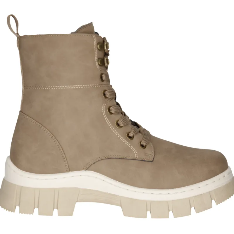 Naisten 2Moons Avery-nilkkurit nauhallisella mallilla. Päällisen materiaalina on polyuretaani, sisäpuolella on ihanan pehmeä fleecevuori ja -pohjallinen. Erittäin paksu ja tukeva ulkopohja on karkeasti pitokuvioitu.