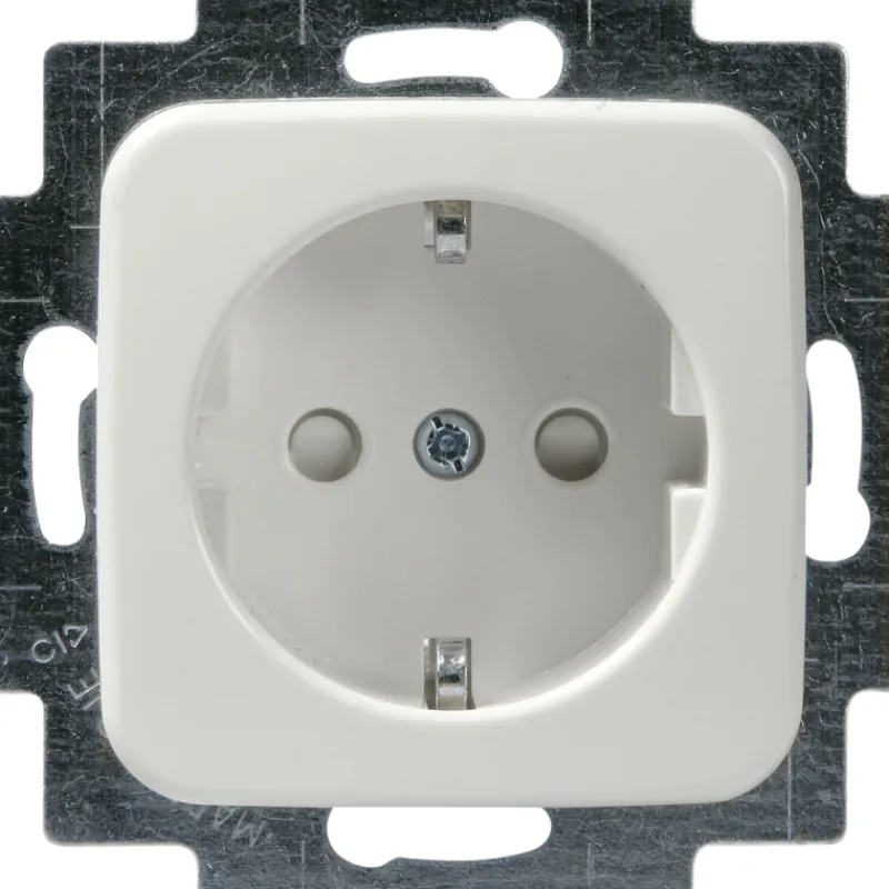 Maadoitettu Jussi-pistorasia kuiviin sisätiloihin. Asennus peitelevyn kanssa maksimissaan 16 A / 250 V kojerasiaan.