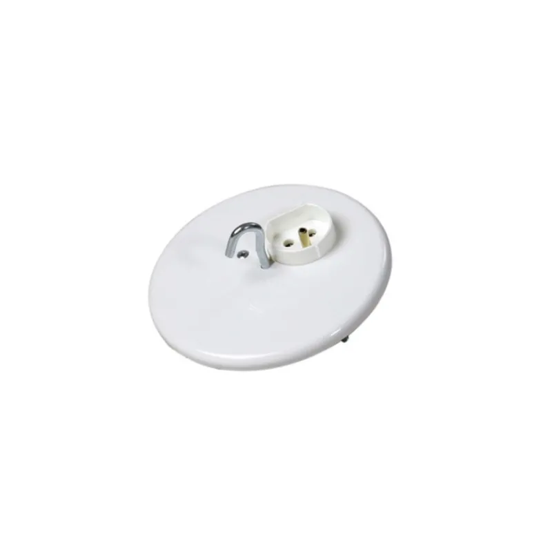 Maadoitettu valaisinripustuskansi uppoasennukseen (6 A/250 V) kuiviin sisätiloihin. Kotelointiluokka IP20. Ripustuskoukun maksimikuormitus 15 kg.