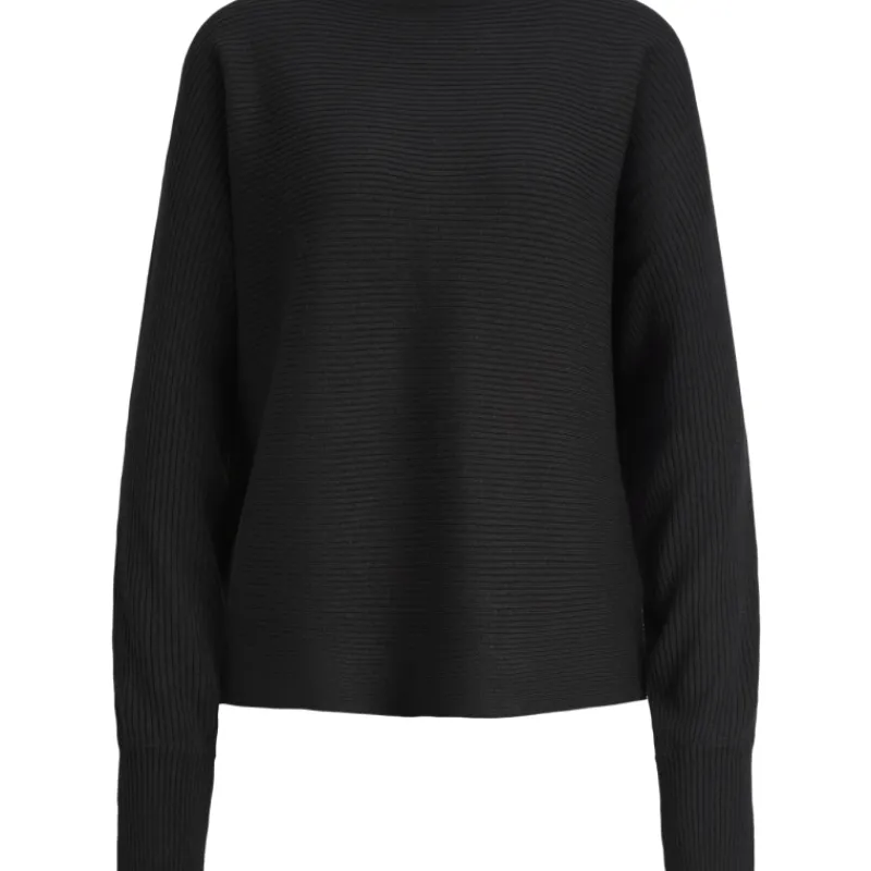 Yksivärinen naisten neulepusero venepääntiellä ja kimonohihoilla.