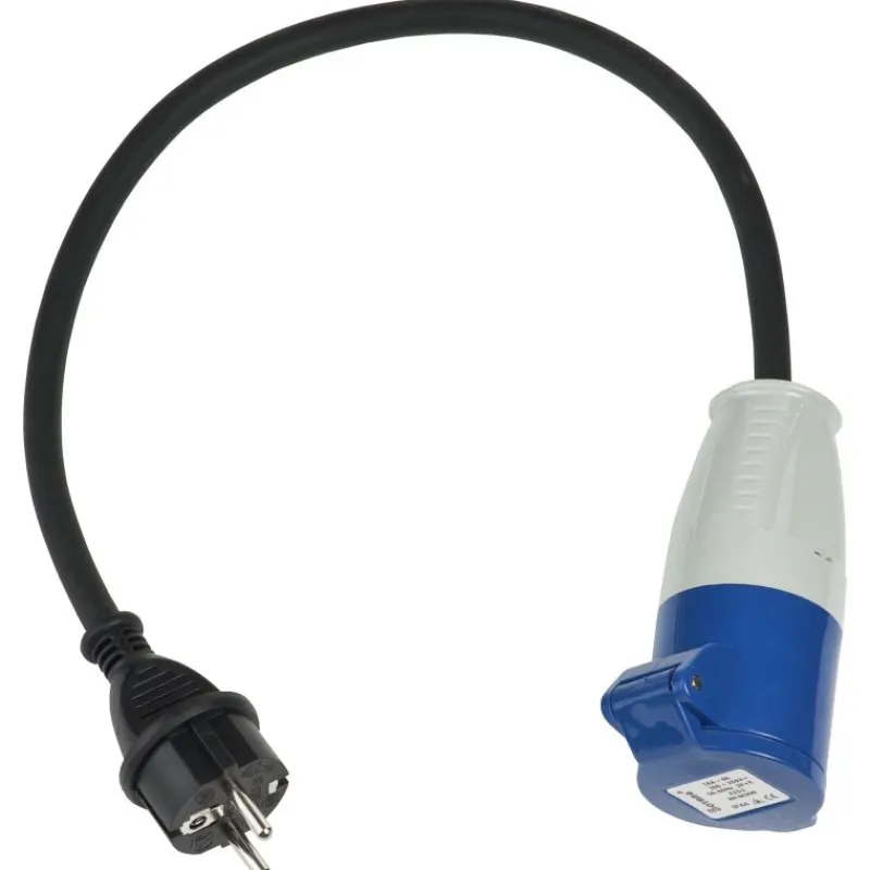 Jatkojohto/adapteri on tarkoitettu asuntovaunu-, asuntoauto- ja veneilijäkäyttöön. 0,5 m johdon toisessa päässä on 3-napainen pistorasia.