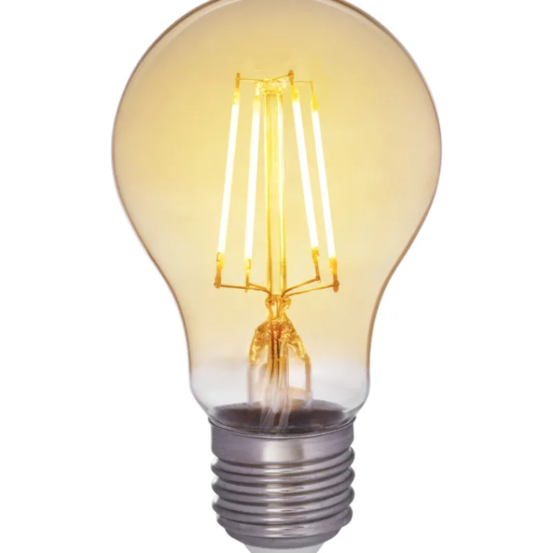 Kirkas vakiokupuinen led 4,5W 2200K E27 360lm 15000h. Lampun koko 60 x 104 mm, kupu lasia, kuvun väri amber. Täysin ympärisäteilevä valonjako, sopii erittäin hyvin kohteisiin, joissa lamppu jää näkyviin. Välitön syttyminen ja täysi valontuotto. Toimintalämpötila-alue -20 … +40 °C. Hyvä värintoisto CRI > 80. Jatkuva tasainen spektri, ei värivääristymiä. Värilämpötila 2200K, kirkas meripihkasävyinen kupu. Ei UV- tai IR-säteilyä. Ei sisällä elohopeaa. Energialuokka F.