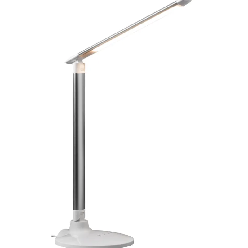 Valaisimessa on myös USB-portti, josta voit kätevästi ladata älylaitteesi, kuten matkapuhelimen tai tabletin. Valaistuskulman- ja asennon säätäminen on helppoa. Virtakytkin on valaisimen jalustassa.