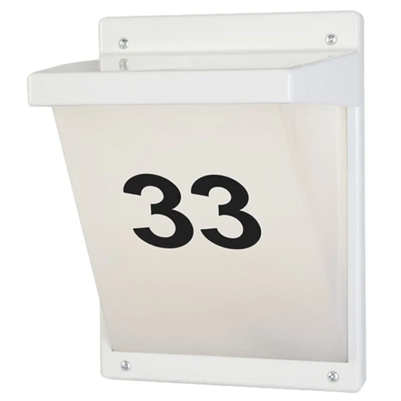 Vino-ulkovalaisin sopii käytettäväksi sekä yleis- ja numerovalaisimena ulkotiloissa. Pakkauksessa on mukana mustat kirjain- ja numerotarrat (A-J / 0-9). Valonlähteeksi suositellaan E27-kantaista A60-kupuista LED-lamppua. LED-lamppu maks. A60 11W E27, ei sisälly pakkaukseen. Käyttöympäristön suosituslämpötila -20 °C…+35 °C.