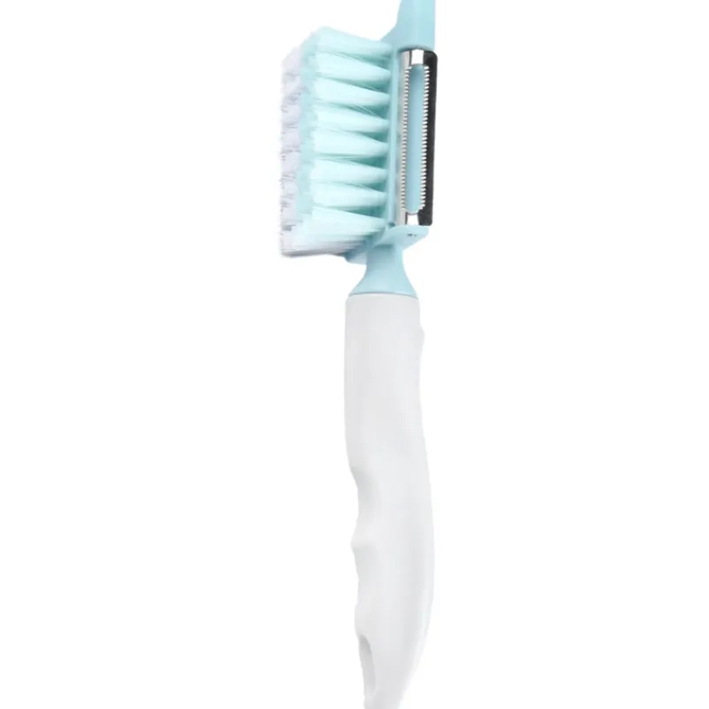 Akro juuresharja kuorintaterällä koostuu sekä kovasta että pehmeämmästä harjasta ja kuorintaterästä. Tämän juuresharjan avulla voit puhdistaa sekä kuoria vihannekset vaivattomasti ja nopeasti. Harja on valmistettu kestävästä muovista ja terä ruostumattomasta teräksestä. Muotoiltu varsi tekee tuotteen käytöstä miellyttävää.