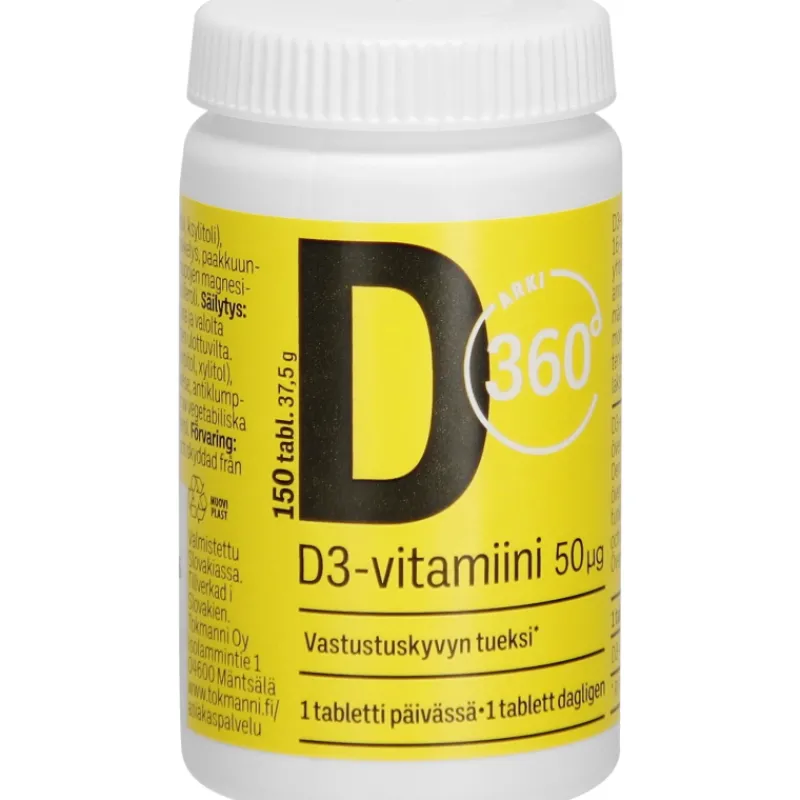 Arki 360u00b0 Terveysravinteet Ja -valmisteet^D-vitamiini 50 u00b5g 150 Kpl