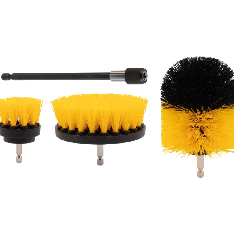 Autoplus-porakoneharjasetissä on 3 erilaista nylon harjapäätä: 50 mm, 85 mm ja 100 mm. Jatkovarsi 150 mm. Pehmeät harjakset. Liitetään porakoneeseen.