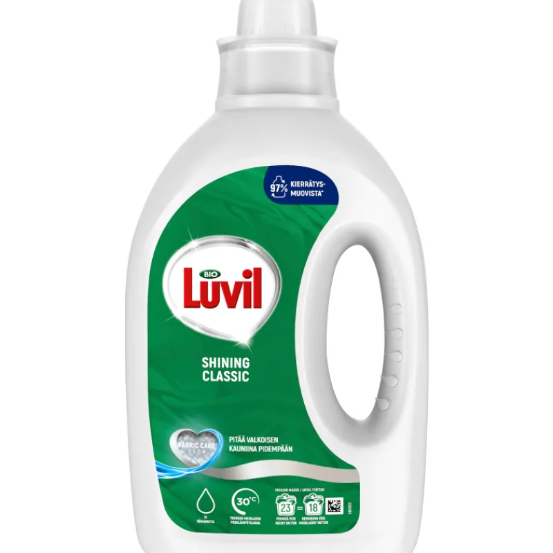 Bio Luvil huolehtii vaatteistasi, jotta sinä voisit nauttia kauniista vaatteista pidempään! Bio Luvil Classic on pyykinpesuaineiden kestosuosikki ja se sopii väri- ja valkopyykin pesuun. Sitkeätkin tahrat häviävät vaatteista ja niihin jää ihana puhtaan pyykin tuoksu. Pyykinpesuneste huuhtoutuu hyvin pyykistä pois myös matalissa lämpötiloissa, joten vaatteisiin ei jää pesuainejäämiä. Sen erityinen teknologia irrottaa myös nukkaa tekstiilien pinnasta.