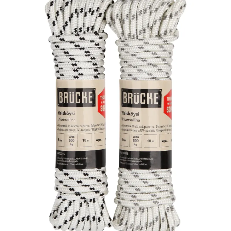 Korkealaatuinen ja UV-suojattu Brücke-yleisköysi on punottu 16 säikeestä ja sen materiaali on polyesteriä. Enimmäiskuormitus 500 kg. Paksuus 6 mm, pituus 10 m.