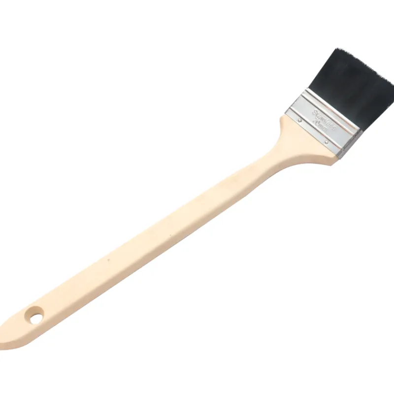 Kaikille maaleille ja lakoille soveltuva Brücke-patterisivellin puuvarrella. Harmaa harjas.