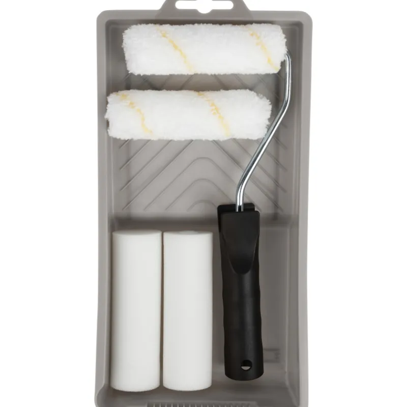Brücke-telasetti sileille pinnoille esim. kalusteiden, ovien yms. maalaamiseen. Jättää erittäin sileän pinnan. Soveltuu kaikille maaleille. Telan leveys 100 mm. Varsi 6 mm. Sisältää 2 mikrokuitu- ja 2 vaahtomuovitelaa, varren sekä maalauslaatikon.