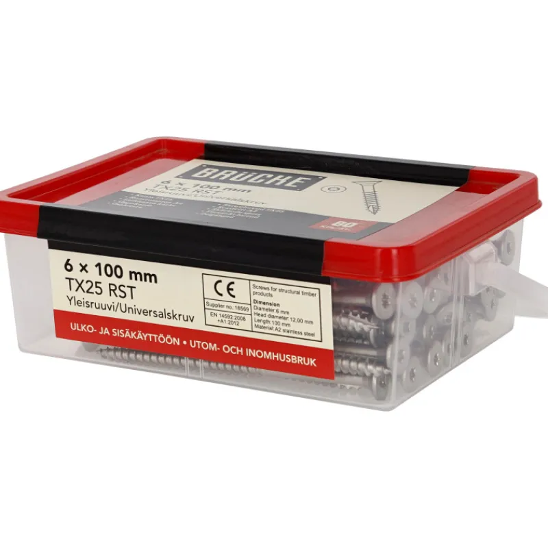 Brücke Naulat Ja Ruuvit-Yleisruuvi 6 X 100 Mm, Rst, Uppokanta, 80 Kpl