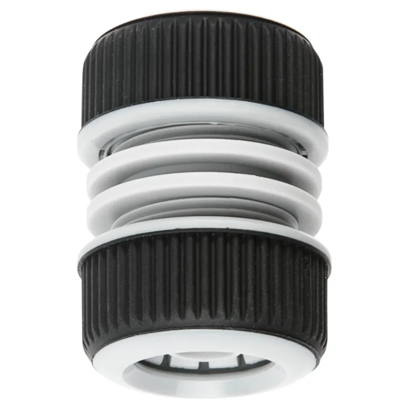 Kestävä muovinen jatko/korjausliitin 3/4″ (16-19 mm) letkuille. Näppärä apu puutarhaletkujen korjaamiseen ja jatkamiseen.