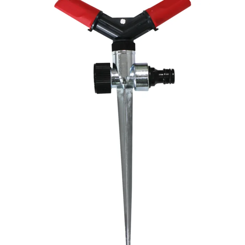 2 haarainen pyörivä sadetin säädettävillä suuttimen kulmalla ja metallisella maapiikillä. Jatkettavissa erikseen hankittavan laitepikaliittimen avulla. Kasteluala jopa n. 120 m2 riippuen vedenpaineesta.