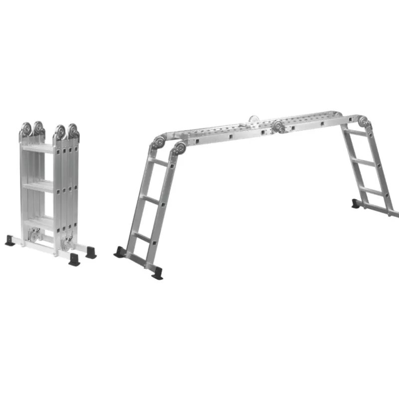 Alumiinisia Brücke-monitoimitikkaita voit käyttää myös itsestään seisovina A-tikkaina ja seinään kauempaa nojaavina tukitikkaina sekä työtasona. Tikkaiden mukana saat kahdesta levystä koostuvan työtason. Säilytystä varten tikkaat voi taitella tiiviiseen nippuun, mitat kokoon taitettuna vain 76,7 x 93 x 25 cm.