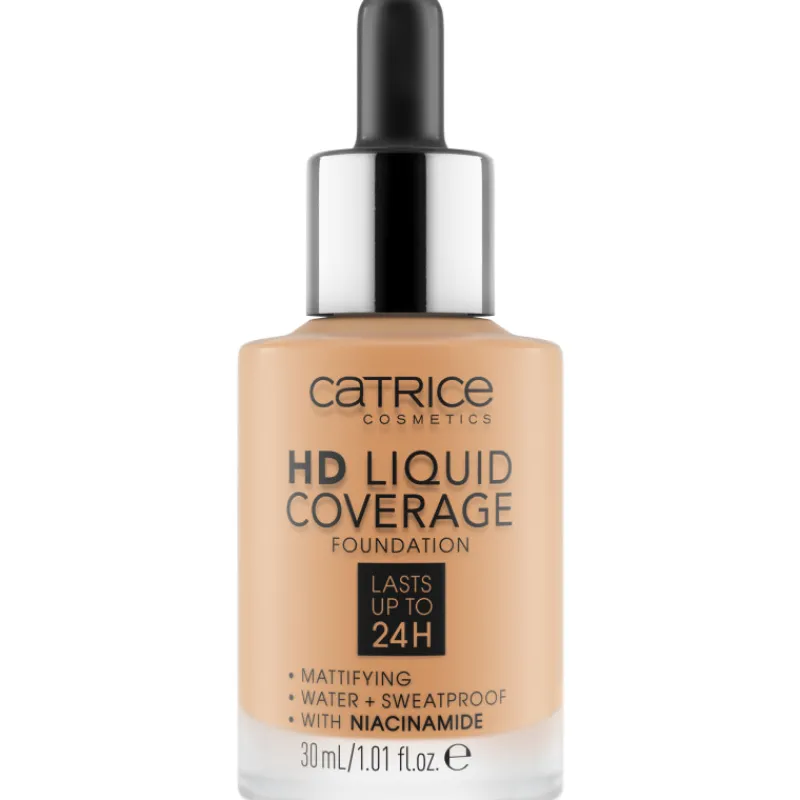 Nestemäinen Catrice HD Liquid Coverage -meikkivoide on kuin toinen iho. Se luo tasaisen ja näyttävän meikkipohjan. Ultrakevyt koostumus on helppo annostella pipettiapplikaattorilla. Peittävä lopputulos kestää jopa 24 tuntia.