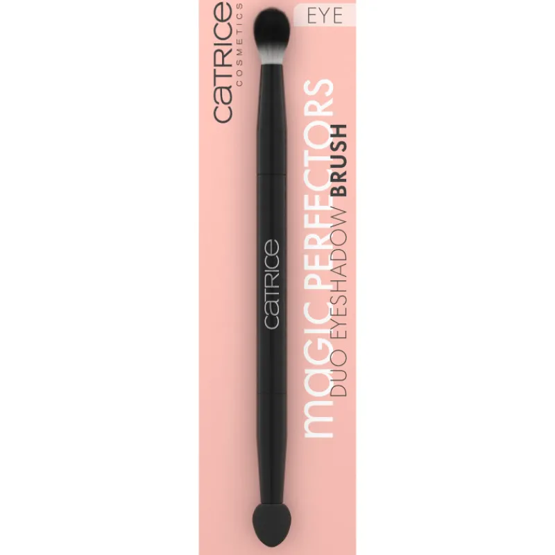 Todellinen monitoimituote: Catrice Magic Perfectors Duo -luomivärisivellin yhdistää vaahtomuovipään toiseen päähän ja synteettisillä harjaksilla varustetun siveltimen toiseen päähän. Tämä mahdollistaa niin tarkkojen korostusten kuin häivytettyjen silmämeikkien luomisen. Duo-sivellin sisältää uudelleenkäytettävän kotelon.