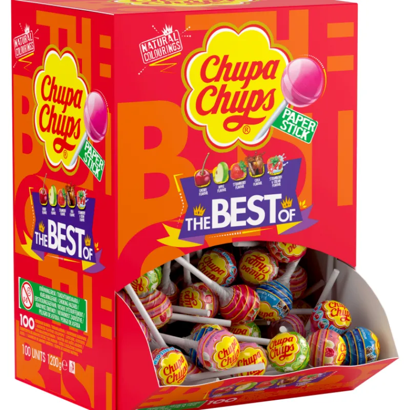 Chupa Chups The Best of -tikkarit sisältävät kaikki tikkarien suosikkimaut: cola, mansikka, kirsikka, omena, vadelma-vanilja sekä mansikka-kermanmaku. Pakkauksessa vain yksi tikkari.