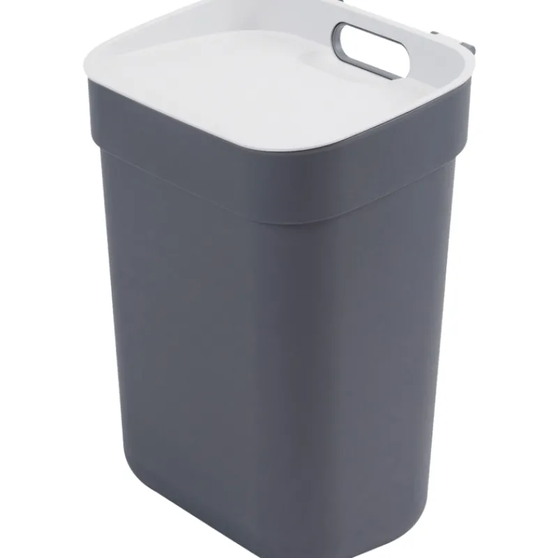 Tyylikkään muotoilunsa ansiosta astioita ei tarvitse piilottaa kaappiin, mutta halutessaan senkin voi tehdä pakkauksen mukana tulevan seinäpidikkeen ansiosta (ruuvit eivät sisälly pakkaukseen). Kannen takaosassa oleva iso kantokahva helpottaa kantamista ja tyhjentämistä. Sileän pinnan ja pyöristettyjen kulmien ansiosta 100% kierrätysmuovista valmistettu astia on helppo pitää puhtaana. Sisältää pussinpidikkeen.
