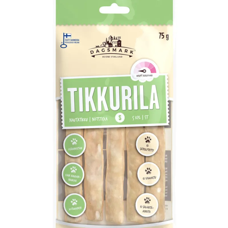 Dagsmark Tikkurila on aidosta naudannahasta jauhettu ja muotoitu kotimainen puruherkku koirallesi. Herkku soveltuu myös koirille, joilla on heikompi puruvoima. Valvo aina koiraasi sen syödessä puruluita.