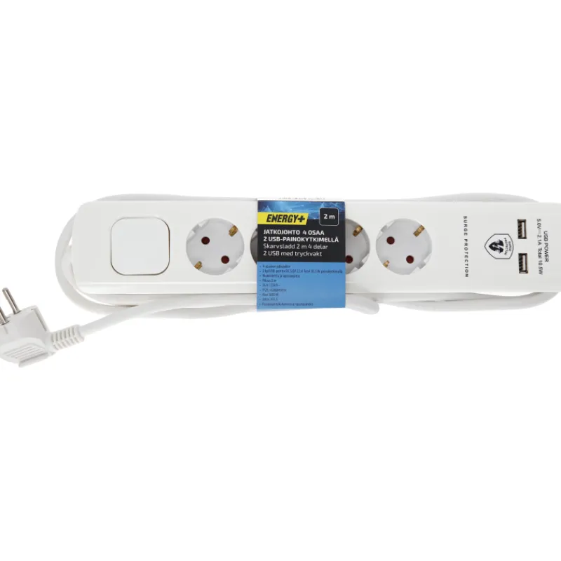 Energy+ Jatkojohdot-Jatkojohto 2m 4 Osaa 2usb Painokytkimellä