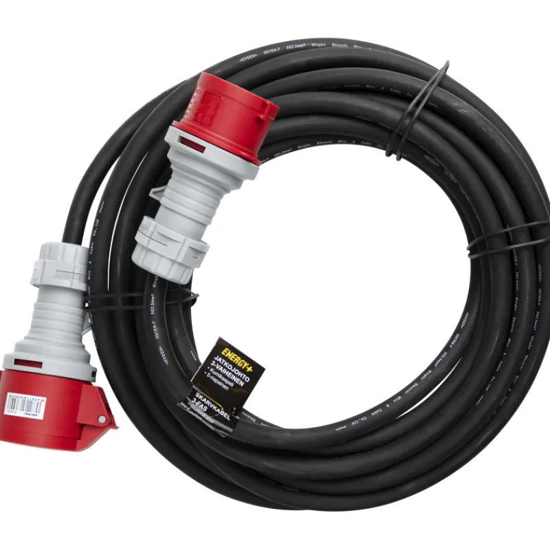 Vahva 5-napainen ulkokäyttöön sopiva kumikaapeli kolmivaihevirralle. Jatkojohdon pituus on 10 m.