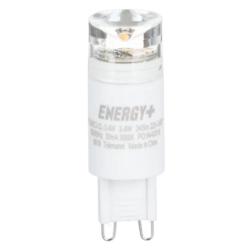 Energiatehokas ja kestävä Energy+ LED-lamppu G9 kannalla. Pienikupuinen LED-lamppu tuottaa lämpimän valkoisen valon ja sen kestävyys on jopa 12 000 käyttötuntia.