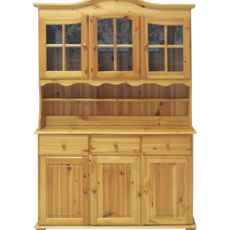 Massiivipuusta valmistetussa Eureka Karoliina -astiakaapissa on runsaasti säilytystilaa. Astiakaapin yläosassa on kolme kaappia, joissa on lasiovet. Alaosasta löytyy kolme tilavaa laatikkoa sekä kaapit, joissa on välihyllyt.