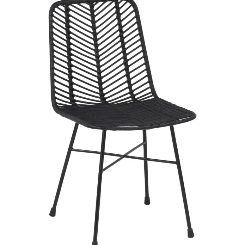 Siro ja kaunis mustan värinen Eureka Cairo-tuoli, jonka istuinosa on rottinkipunosta ja jalat metallia.