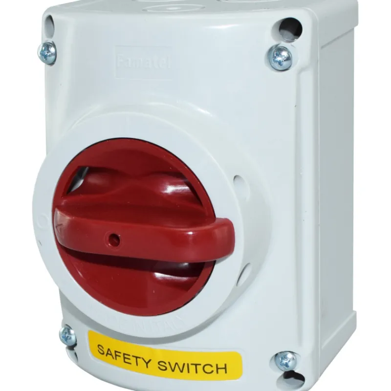 Famatel Sähköasennustarvikkeet-Turvakytkin 16A 3-napainen, Edestä Pyöräytettävä